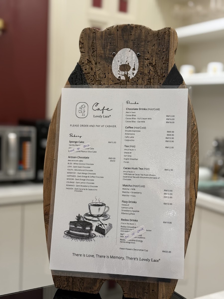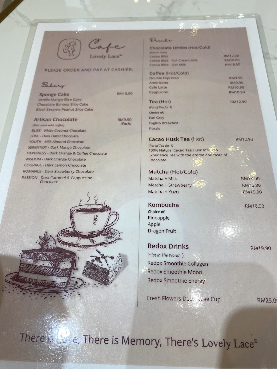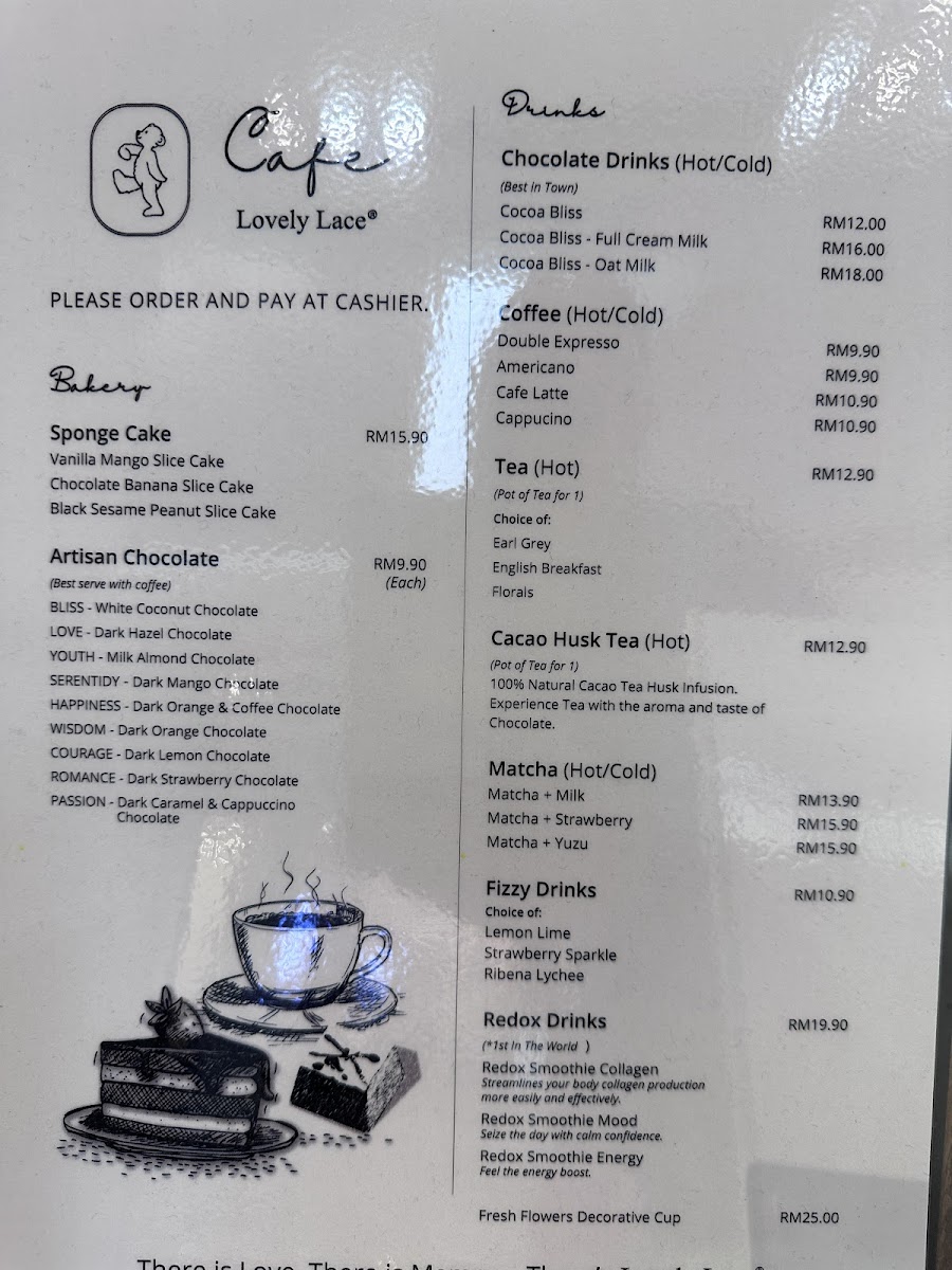 The menu, although limited, is tastefully curated. You can savor the burnt cheesecake, lauded for its decadent flavor, or indulge in artisan chocolates paired with aromatic coffees and teas for just RM19.90. Special promotions like the combo sets make the experience even more enticing.